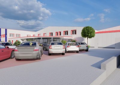 In Sande, im Landkreis Friesland, realisieren wir für Züblin Stahlbau ein modernes, repräsentatives Bürogebäude mit integrierter Kantine. Auf rund 1.650 m² BFG entsteht ein Ort für kreative, flexible Arbeitswelten und innovative Projekte. Der markante Eingang wird durch das charakteristische, züblinrote Vordach betont und lädt in einen offenen, zweigeschossigen Eingangsbereich ein. Sichtbare Stahlelemente im Inneren spiegeln die Identität und die Expertise von Züblin wider.